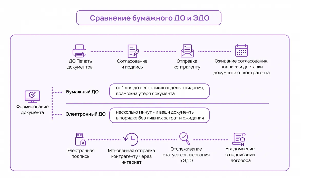Использование электронного формата для передачи актов сверки существенно сокращает время обмена документами между контрагентами, автоматизирует обработку данных и позволяет избегать ненужных расходов на бумагу, пересылку и хранение документов. Однако осуществлять передачу электронного акта сверки могут только те организации и ИП, которые подключены к системе ЭДО и имеют действующие сертификаты ключа проверки электронной подписи.