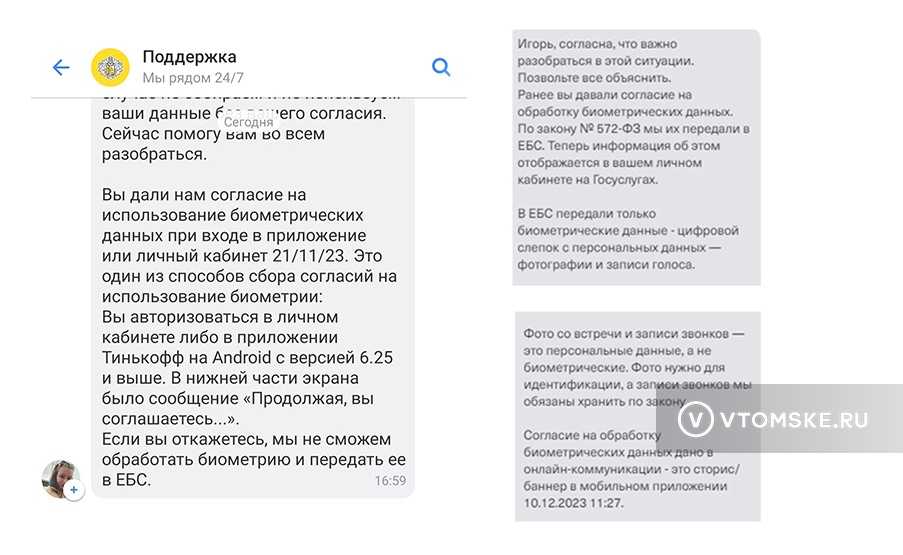 Одному из томичей Тинькофф-банк ответил, что есть пять способов, как клиент может дать согласие на обработку биометрических данных: