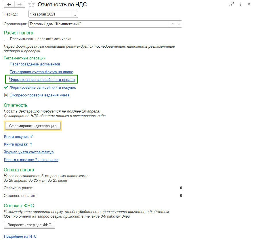 Обращаем внимание, мы рекомендуем выполнять регламентные операции в помощнике по учету НДС по порядку, подробнее про работу с помощником по НДС.