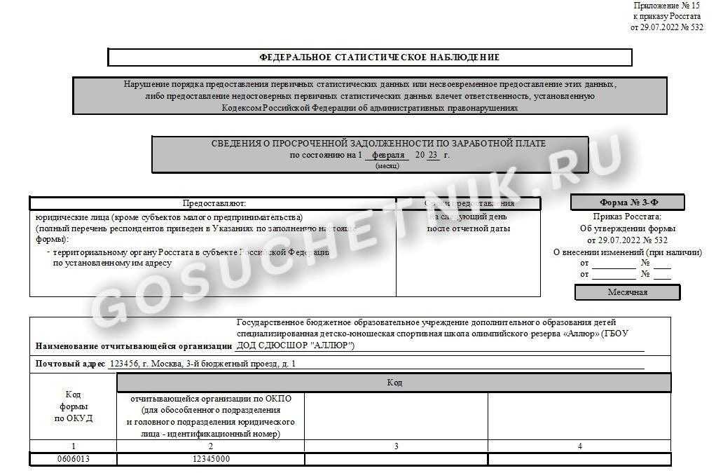 Этот отчет в статистику направляют не все организации, а только юридические лица, у которых на отчетную дату (1-ое число каждого месяца) образовались долги по заработной плате. Вот кто предоставляет 3-Ф в статистику в 2023 году в территориальное отделение ведомства: