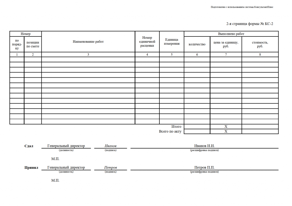 Вторая часть формы КС-2 включает в себя таблицу из восьми столбцов, каждый из которых необходимо будет заполнить.