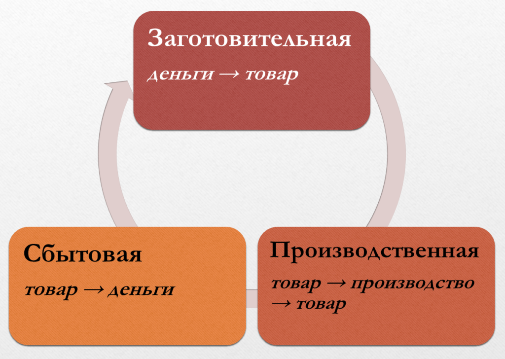 Фактически на этом этапе происходит трансформация денег в товары, приобретенные предприятием для дальнейшего производства продукции.