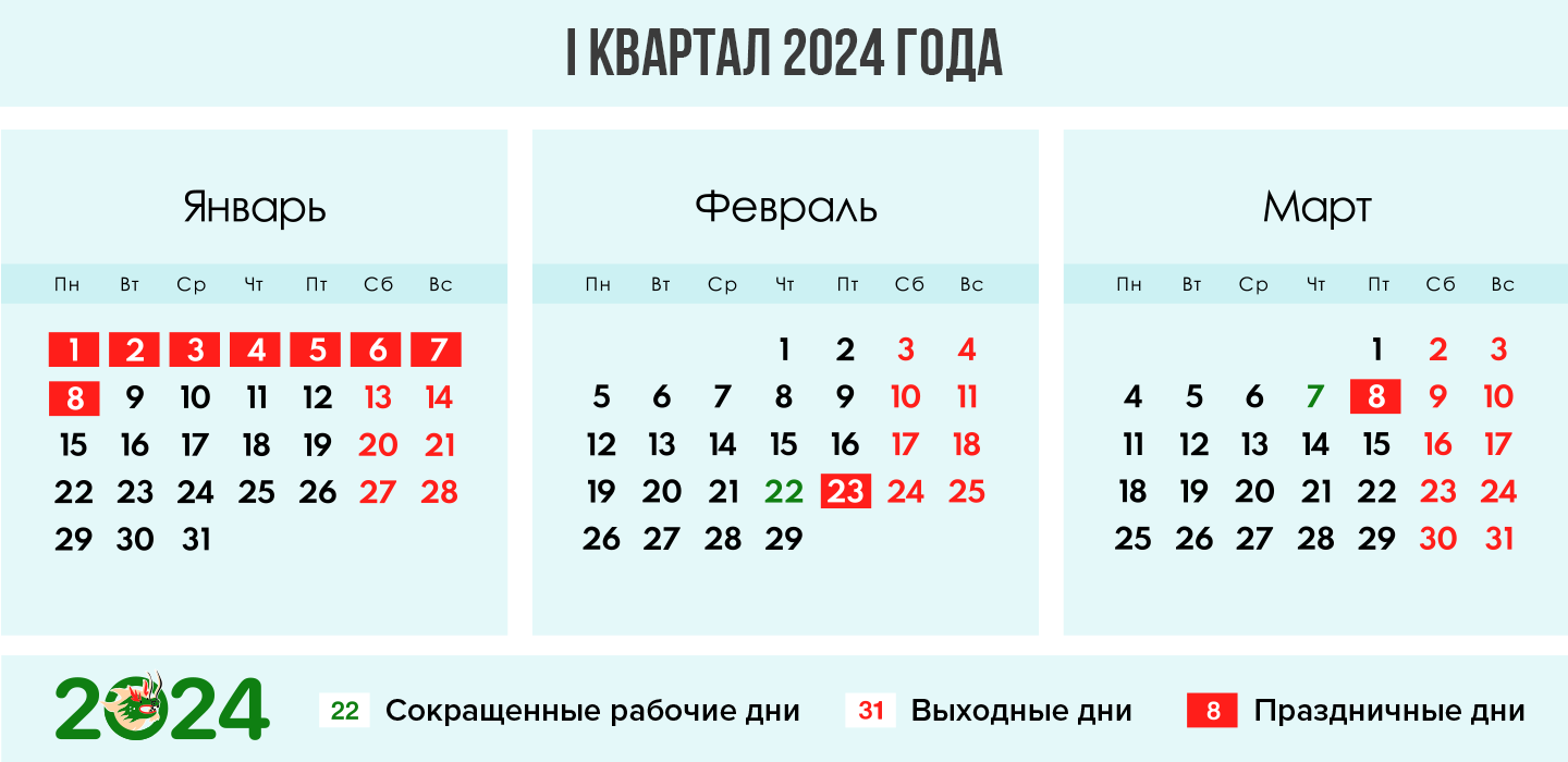 Номы рабочего времени для 1-го квартала 2024 года будут такими: