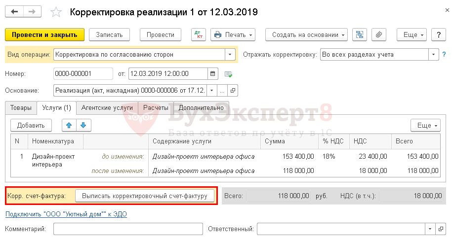 - как провести корректировку реализации, если по согласованию сторон стоимость реализации изменилась;