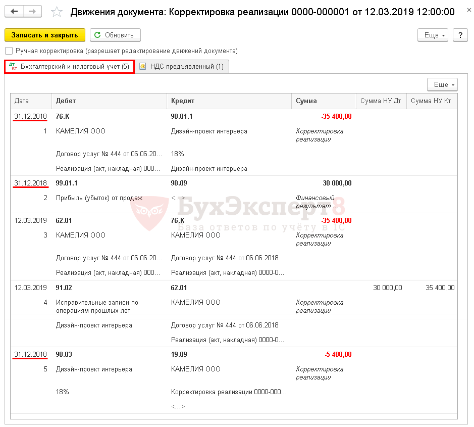 Корректировка реализации в сторону уменьшения в 1С 8.3 в текущем периоде