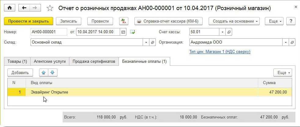 Рис. 1. Безналичные оплаты в отчете о розничных продажах