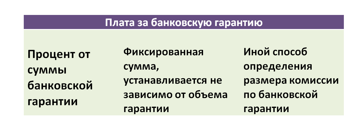 Причем банк вправе установить особый порядок погашения комиссионного сбора. Например, принципал оплатит комиссию одной суммой. Либо плата за банковскую гарантию начисляется ежемесячно, по аналогии с кредитными платежами. Все эти условия должны быть закреплены в договоре о предоставлении банковской гарантии.
