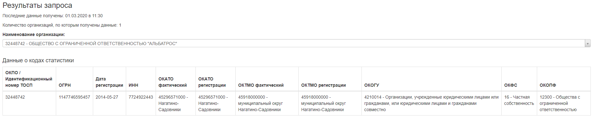 Данные на сервере Росстата обновляются ежедневно, и уже на следующий день после регистрации нового хозяйствующего субъекта последний сможет получать интересующие его статистические коды.