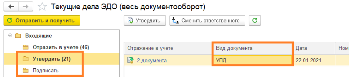 Полученный документ попадет в папку «Входящие» – «Утвердить» или «Подписать».