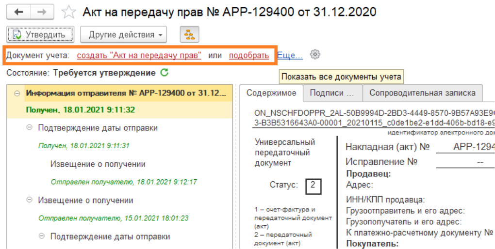 о получении», подписанное контрагентом и загруженное в базу отправителя ЭДО. Ожидается ответная