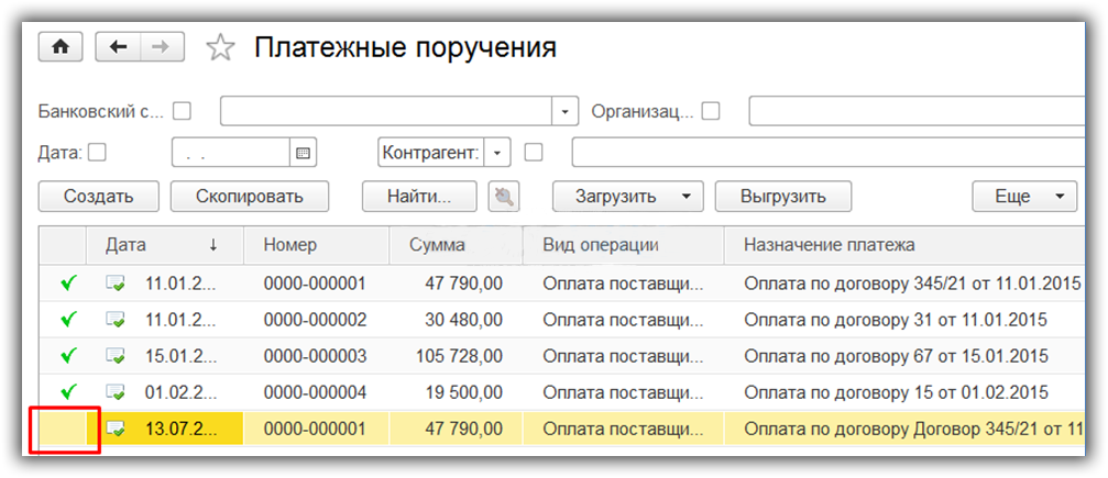 При наличии у предприятия нескольких расчетных счетов, разносить выписку банка необходимо по каждому из них отдельно. Проводить операцию следует ежедневно, при наличии транзакций по расчетному счету.