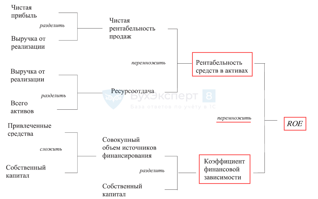 Согласно ей, рентабельность собственного капитала зависит от трёх финансовых показателей: