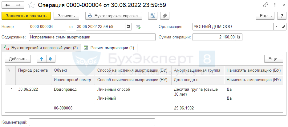 Исправление амортизации за текущий год