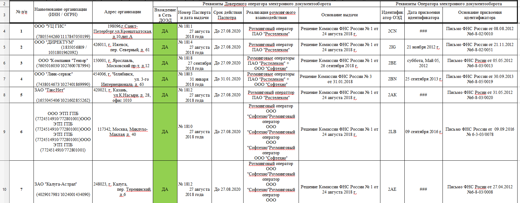 Передавать электронные счет-фактуры можно только с помощью определенных операторов, которые называются доверенными. Это организации, оказывающие услуги технической поддержки электронного документооборота между компаниями. Их полный перечень находится на сайте ФНС.