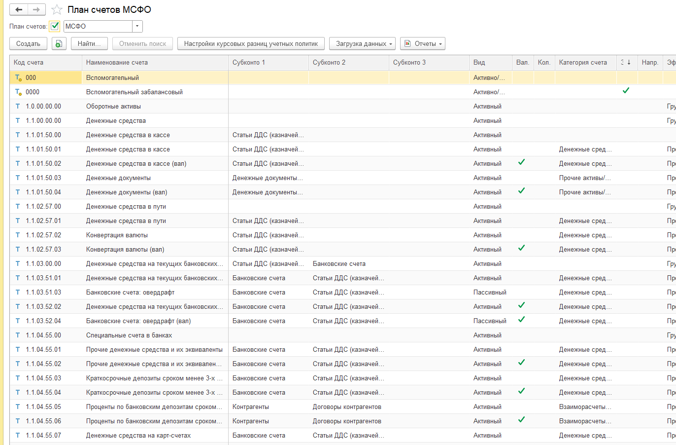 Перед началом ведения учета необходимо создать или скорректировать рабочий план счетов. План счетов МСФО хоть