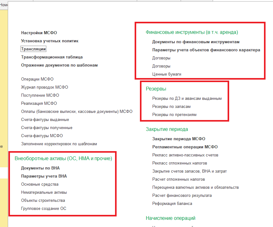 Функционал, касающийся непосредственно МСФО и формирования отчетов, выведен в отдельные блоки (рис.1).