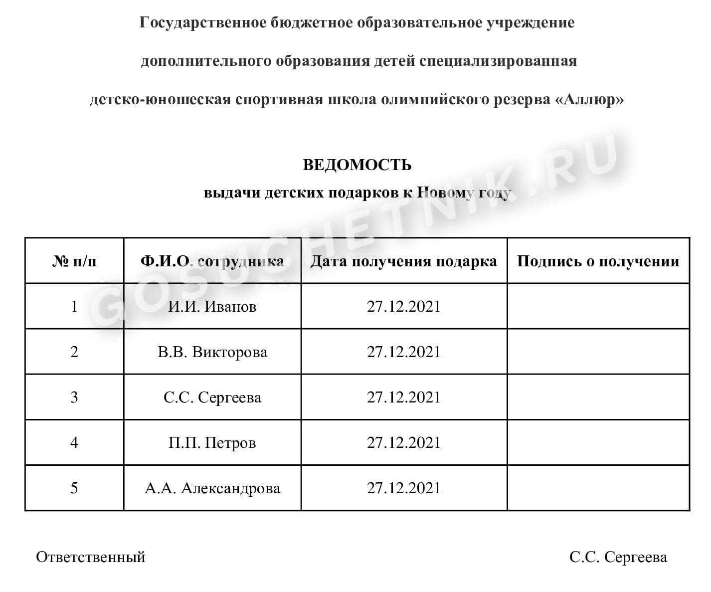 Не забудьте оформить детские презенты соответствующим образом. Издайте приказ о выдаче подарков, создайте ведомость вручения. Расписываться в получении должны сотрудники — родители детей, которым будут выдаваться подарочные коробки на Новый год.