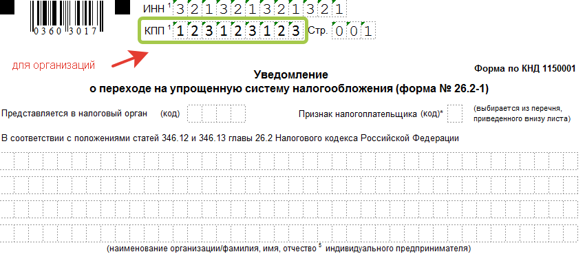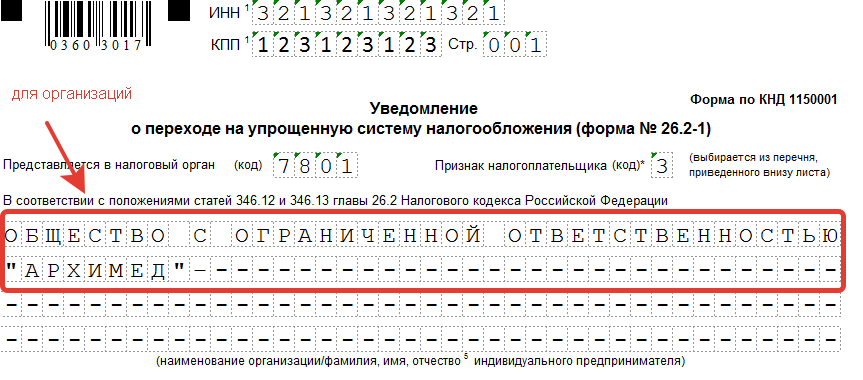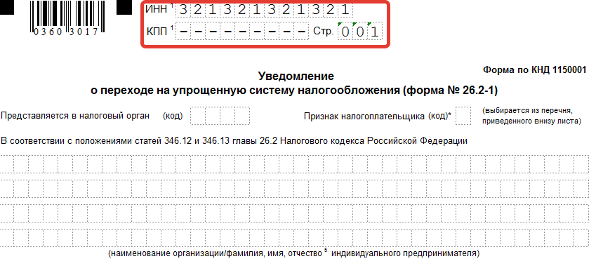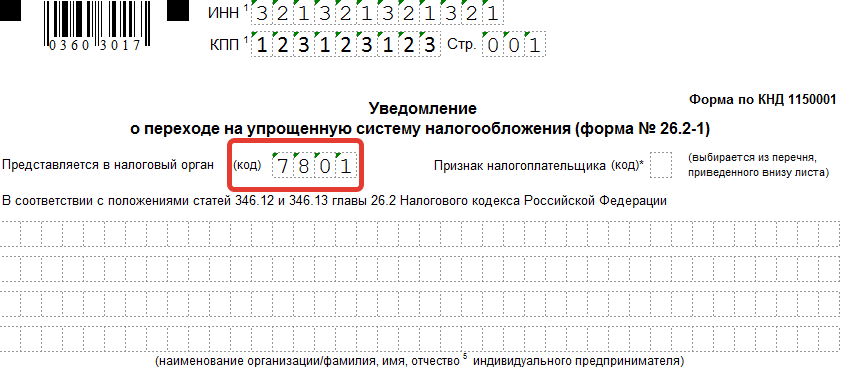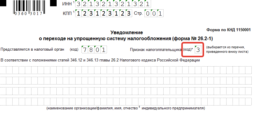 - 1 — для тех, кто переходит на УСН с других режимов налогообложения с начала календарного года. Не забудьте вписать год перехода;