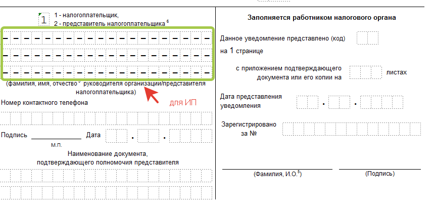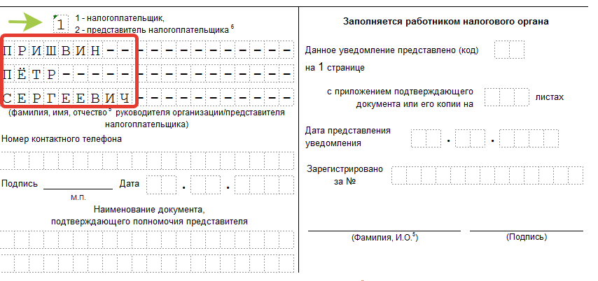 Укажите контактный номер, дату подачи уведомления. На бланке ставиться подпись предпринимателя, руководителя фирмы или представителя налогоплательщика.