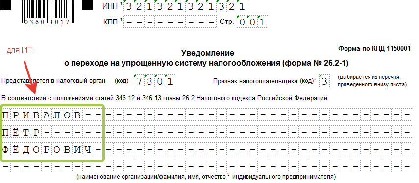 Предприниматель вносит ФИО, остальные клетки заполняя прочерками.