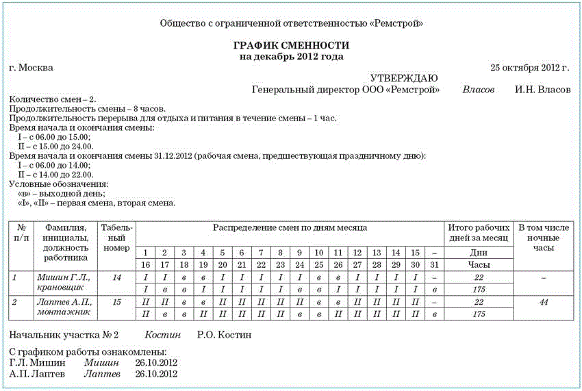 Сменный график работы по ТК РФ – норма часов и порядок оформления