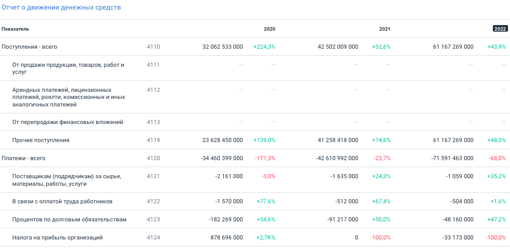 Отчет включает потоки от текущих финансовых, инвестиционных операций