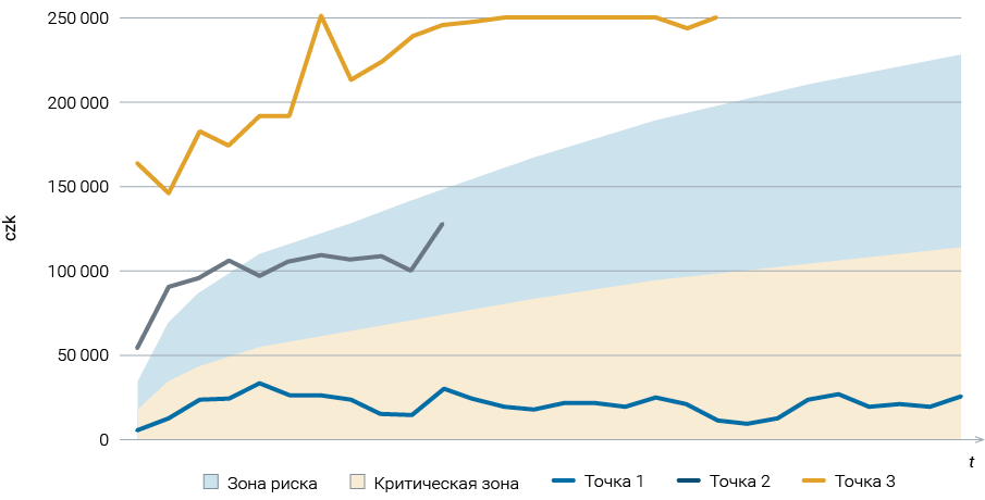 Границами зон были два графика, которые определяются с помощью финансового моделирования (см. рис. 1):