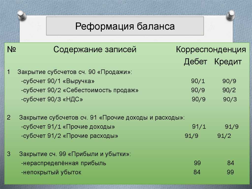 Реформация баланса в части закрытия субсчетов счета 91: