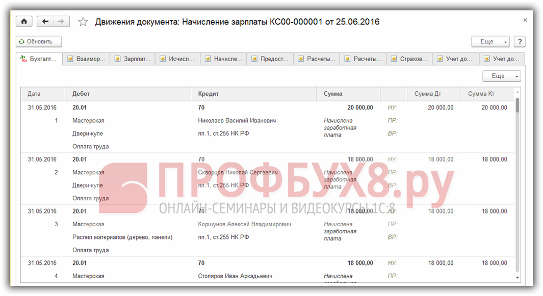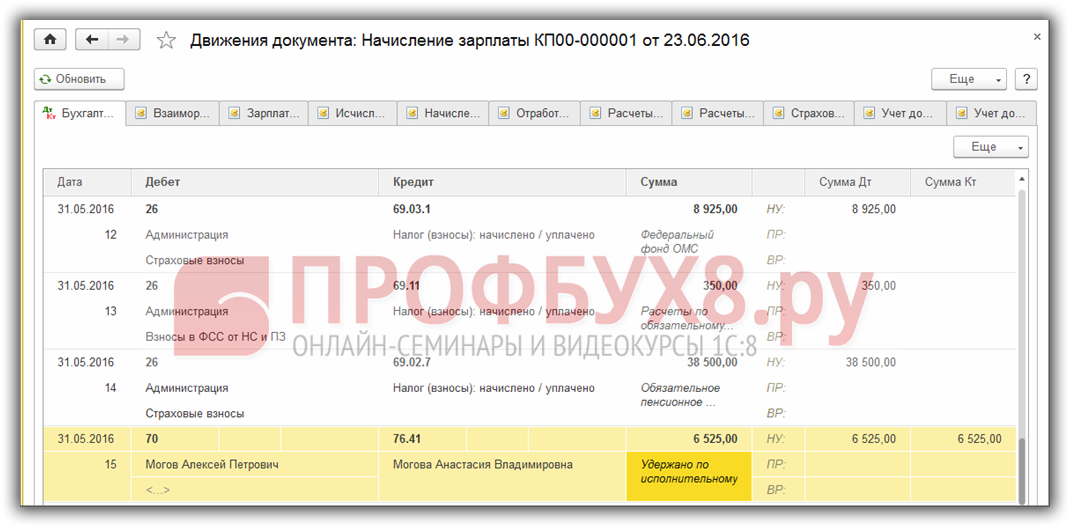Проведем и проверим проводки по алиментам в 1С 8.3 Бухгалтерия: