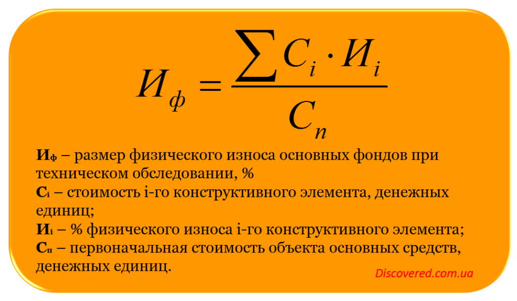 Формула расчета физического износа основных фондов исходя из сроков эксплуатации