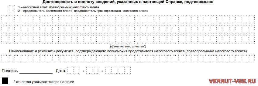 Заполнение первой страницы справки завершается подтверждением достоверности указанной информации. Необходимо: