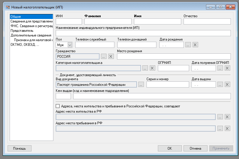 По выбранному документу будет создана форма отчётности. Некоторые поля в ней будут заполнены автоматически (ФИО, ИНН и прочие реквизиты, которые вы указали при создании профиля налогоплательщика). Остальные нужно будет заполнить вручную. Для расчёта суммы налога на верхней панели необходимо нажать кнопку «Р», а для проверки правильности заполнения формы по контрольным соотношениям — кнопку «К».