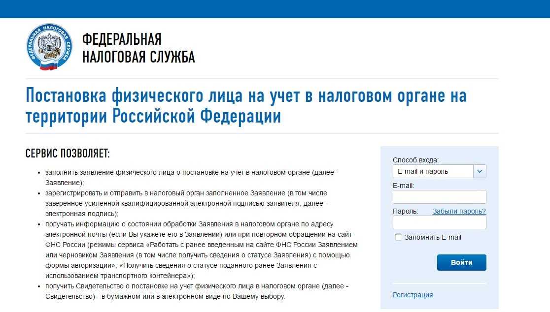 Сервис позволяет направить в налоговый орган заявление физического лица о постановке на учет.