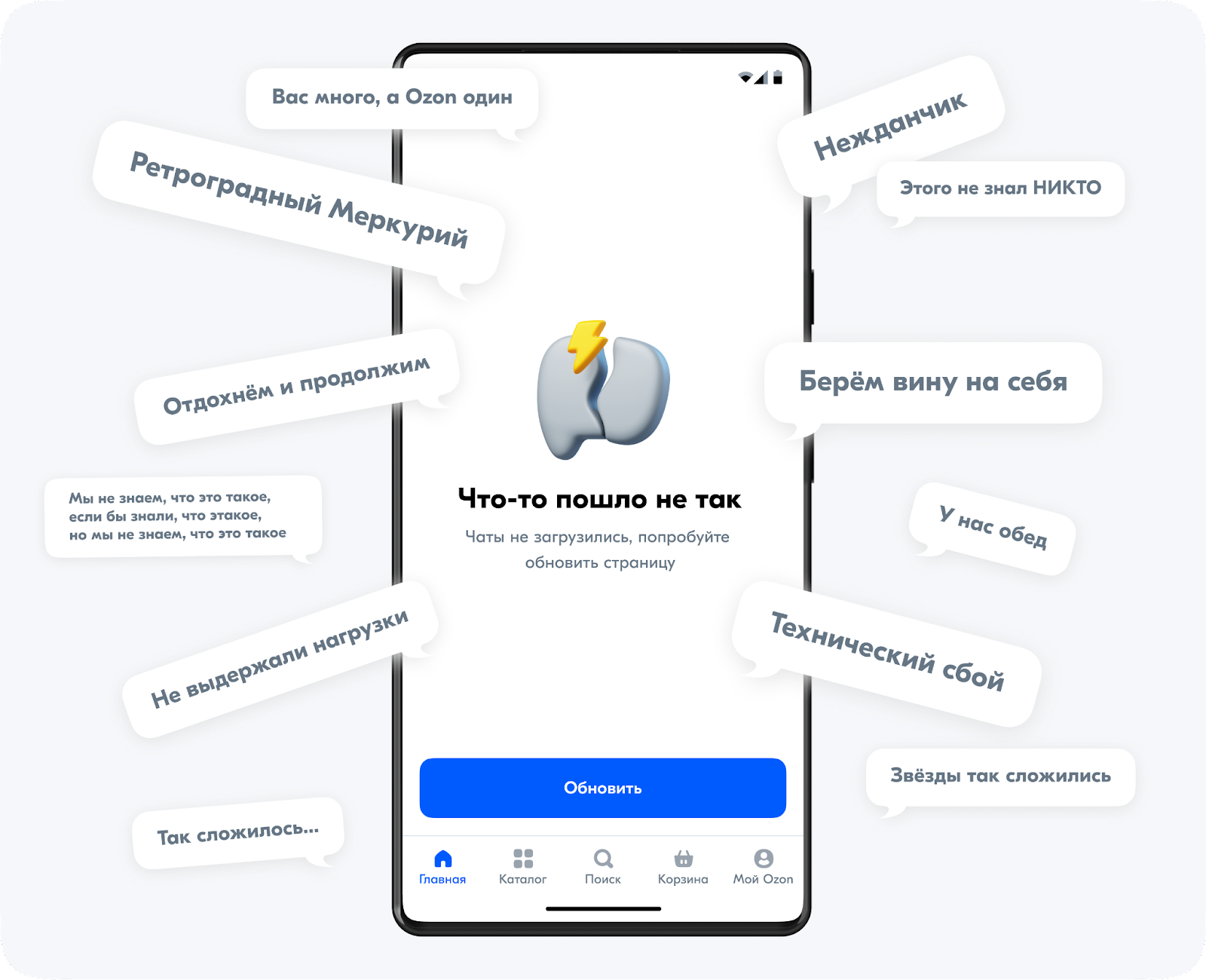 Не используйте слова «ой» и «упс». Это выглядит так, будто вы не контролируете, что происходит в вашем приложении. Ошибки случаются — в этом нет ничего страшного.