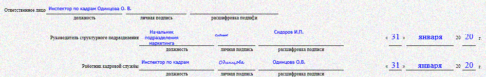 В конце документа ставят подписи все уполномоченные сотрудники: