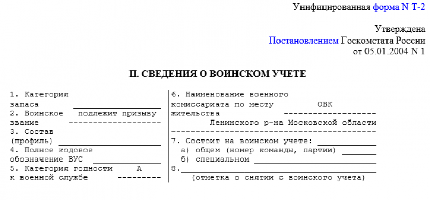 Общие сведения о форме Т-2 и тонкостях ее заполнения