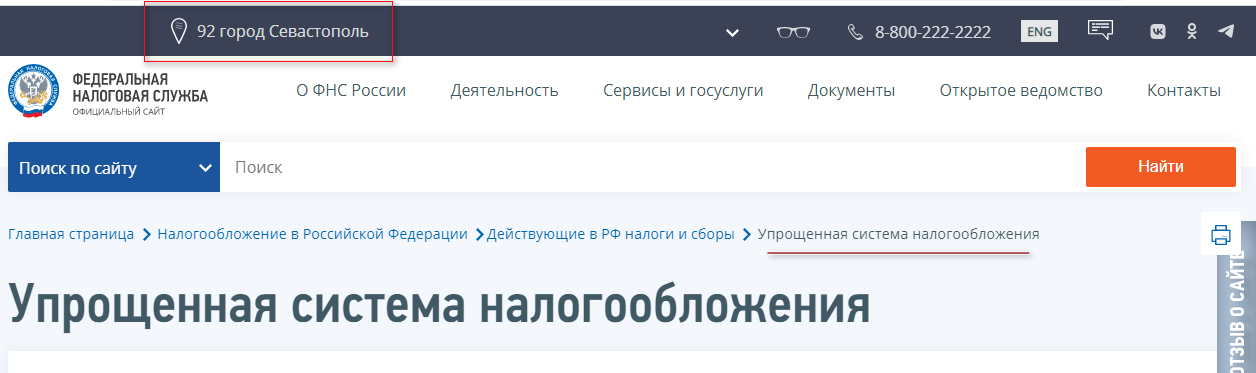 Например, чтобы узнать ставки, установленные в Севастополе, нужно выбрать «92 город Севастополь»: