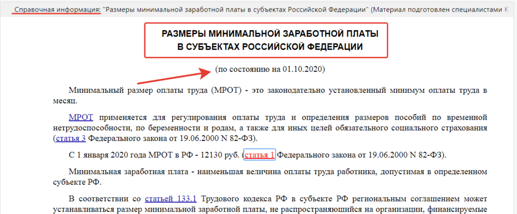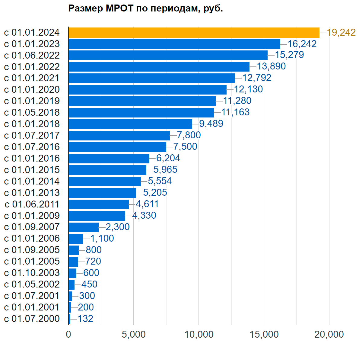 | Дата | Размер МРОТ, руб./мес. | Нормативный акт |