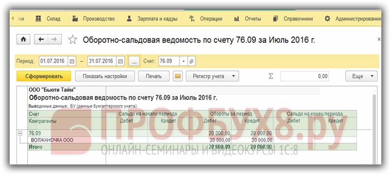 Расчеты с комитентом можно проверить, сформировав оборотно-сальдовую ведомость по счету 76.9: