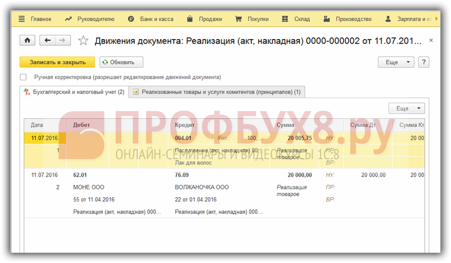 Проведенный документ дает проводки: