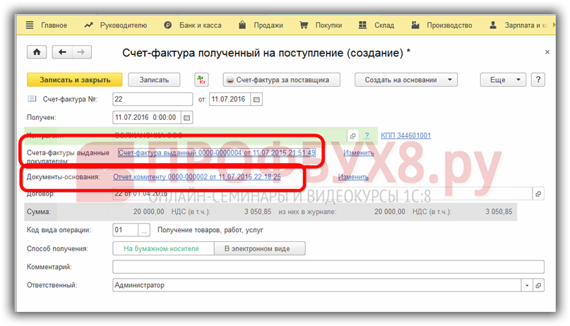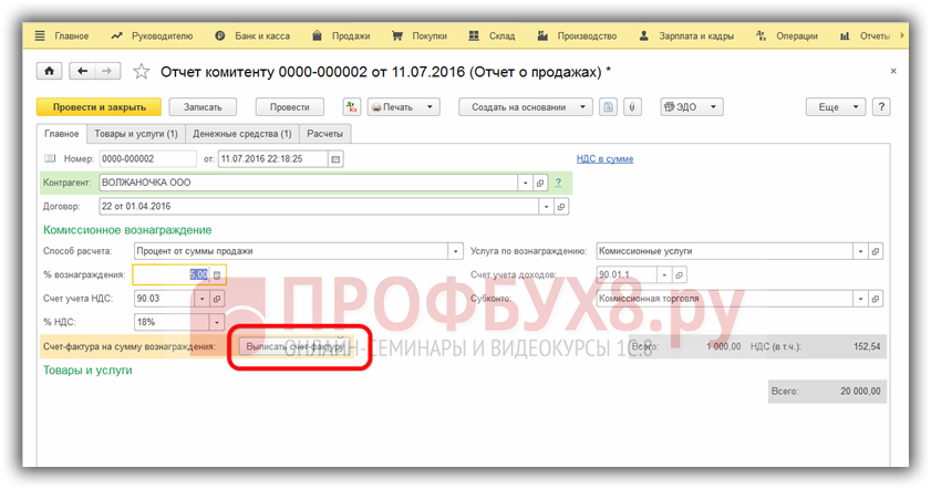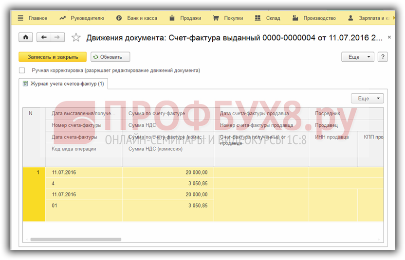Регистрация перевыставленного счета-фактуры от комитента
