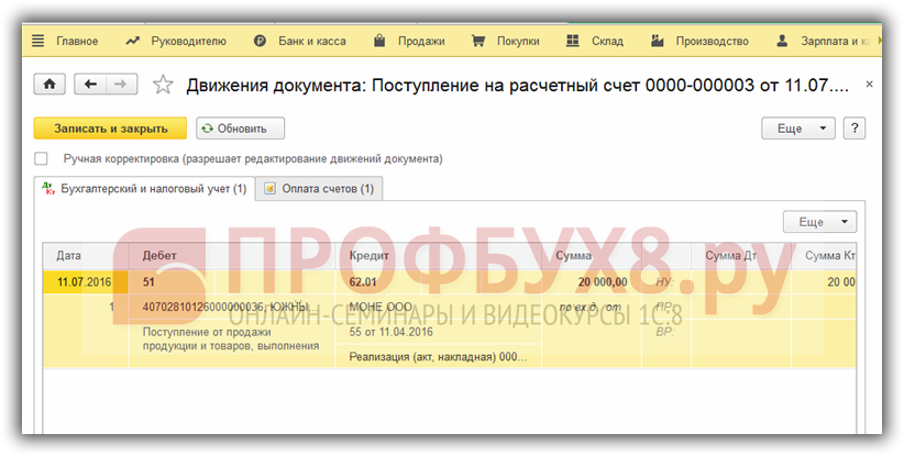 Проведем документ, и посмотрим движение, которое он делает: