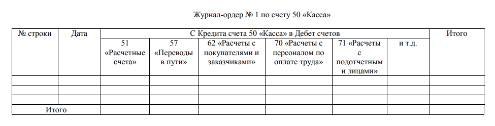 Журнал регистрации приходных и расходных кассовых ордеров (ЖО №1)