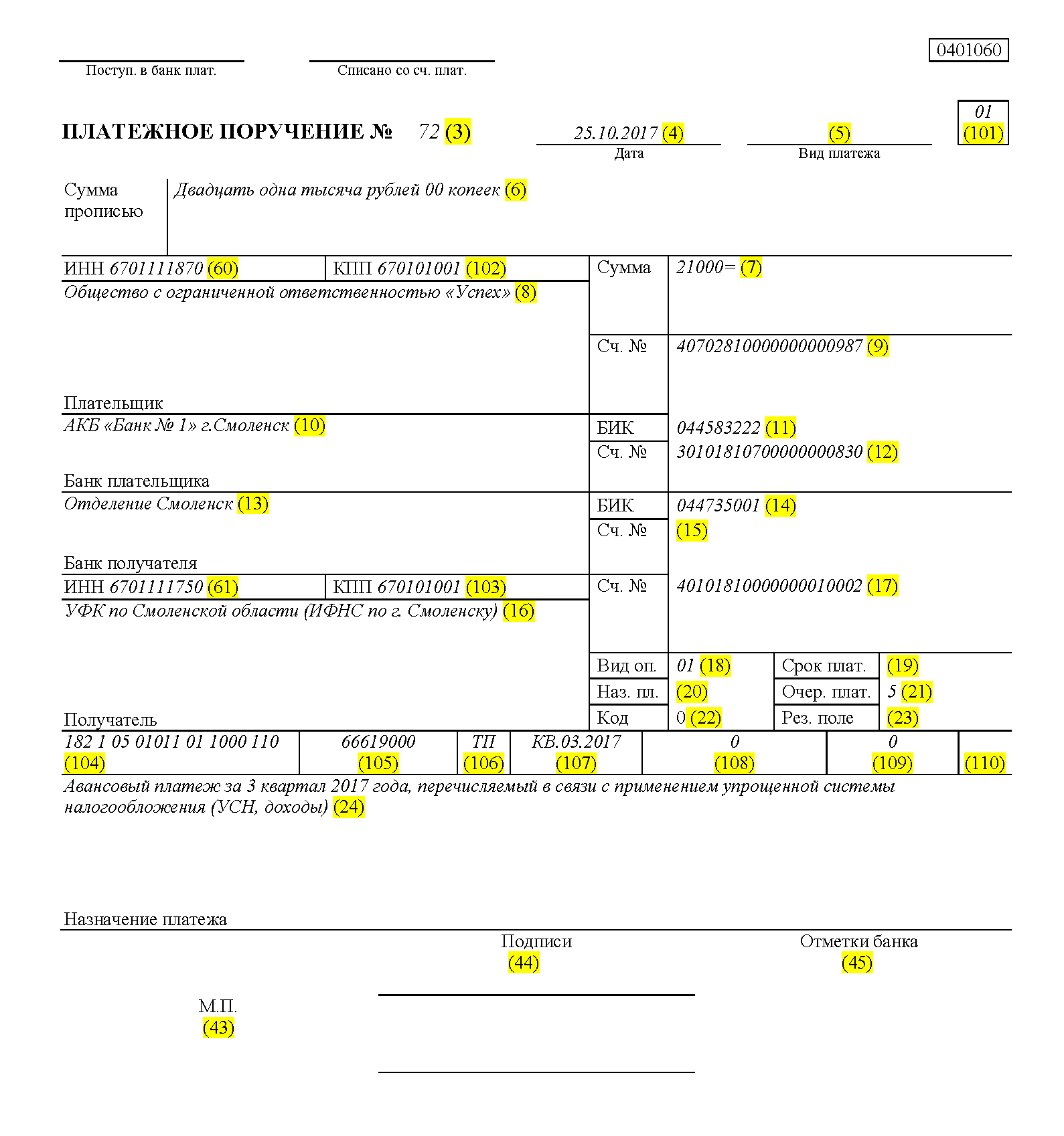 Зная свой налог, можно приступать к заполнению налоговой декларации и затем уже уплачивать налог. Очень часто коммерсанты встречаются с тем, что в платежные документы уже внесены все реквизиты.