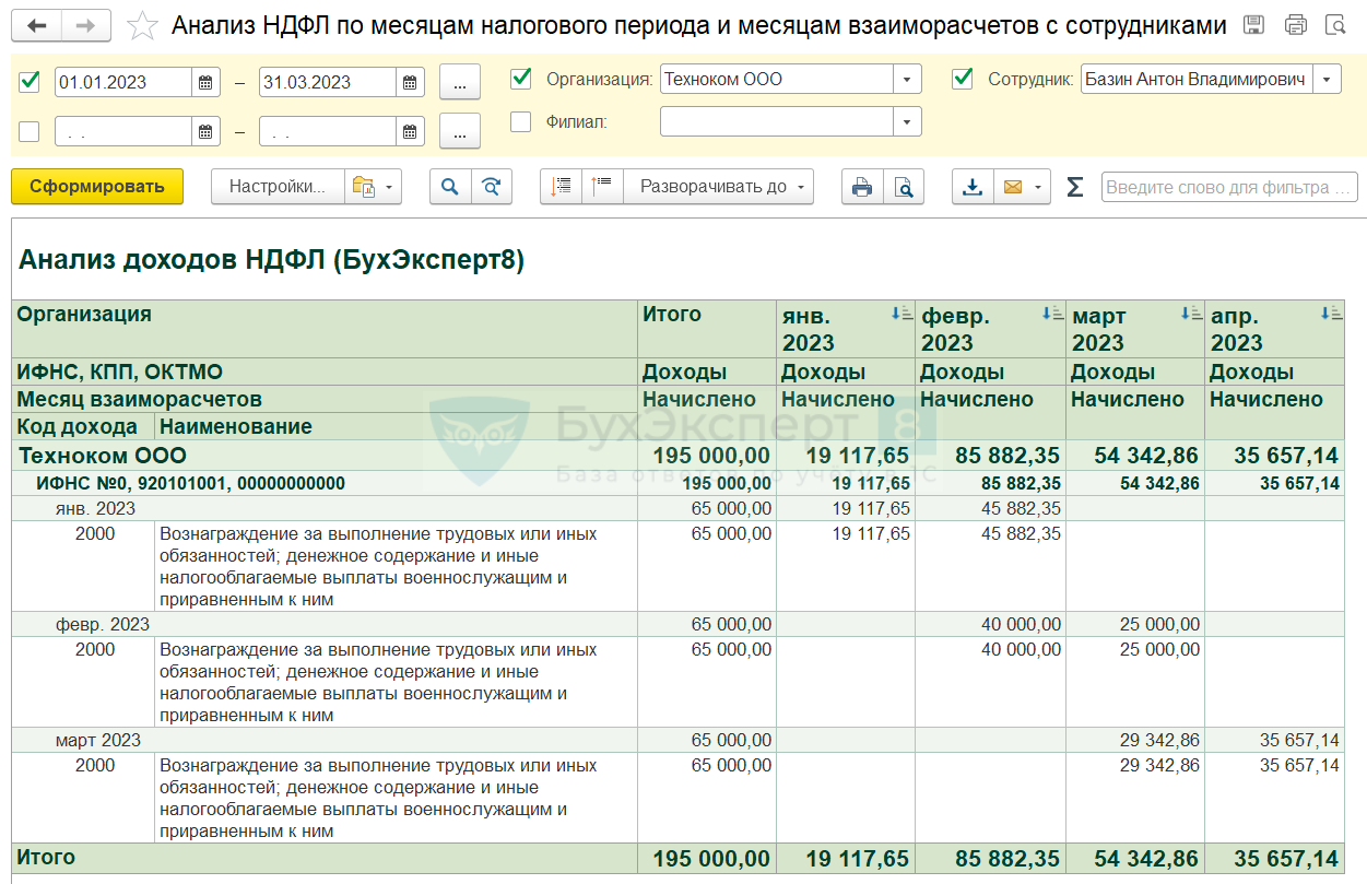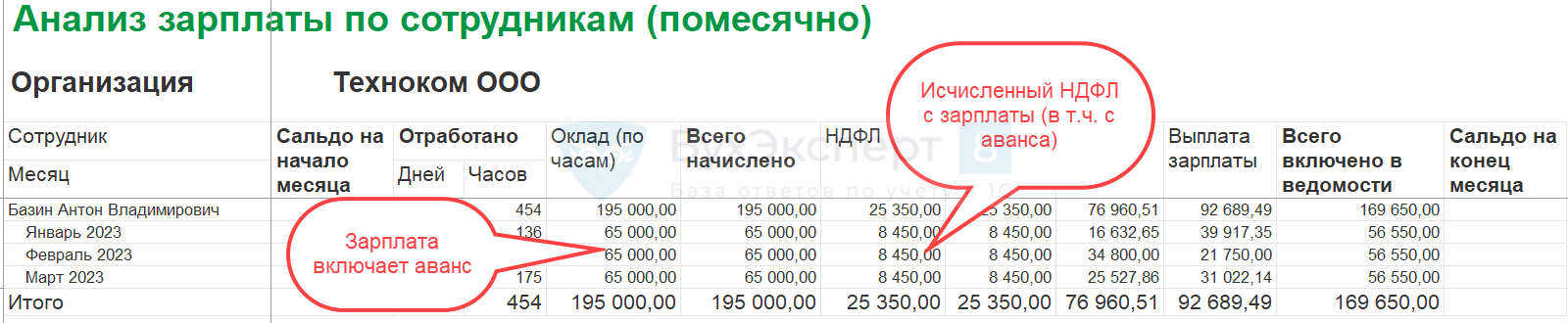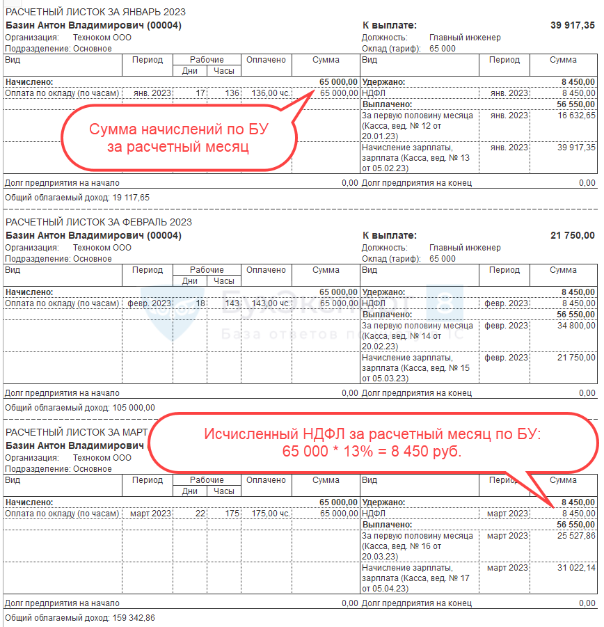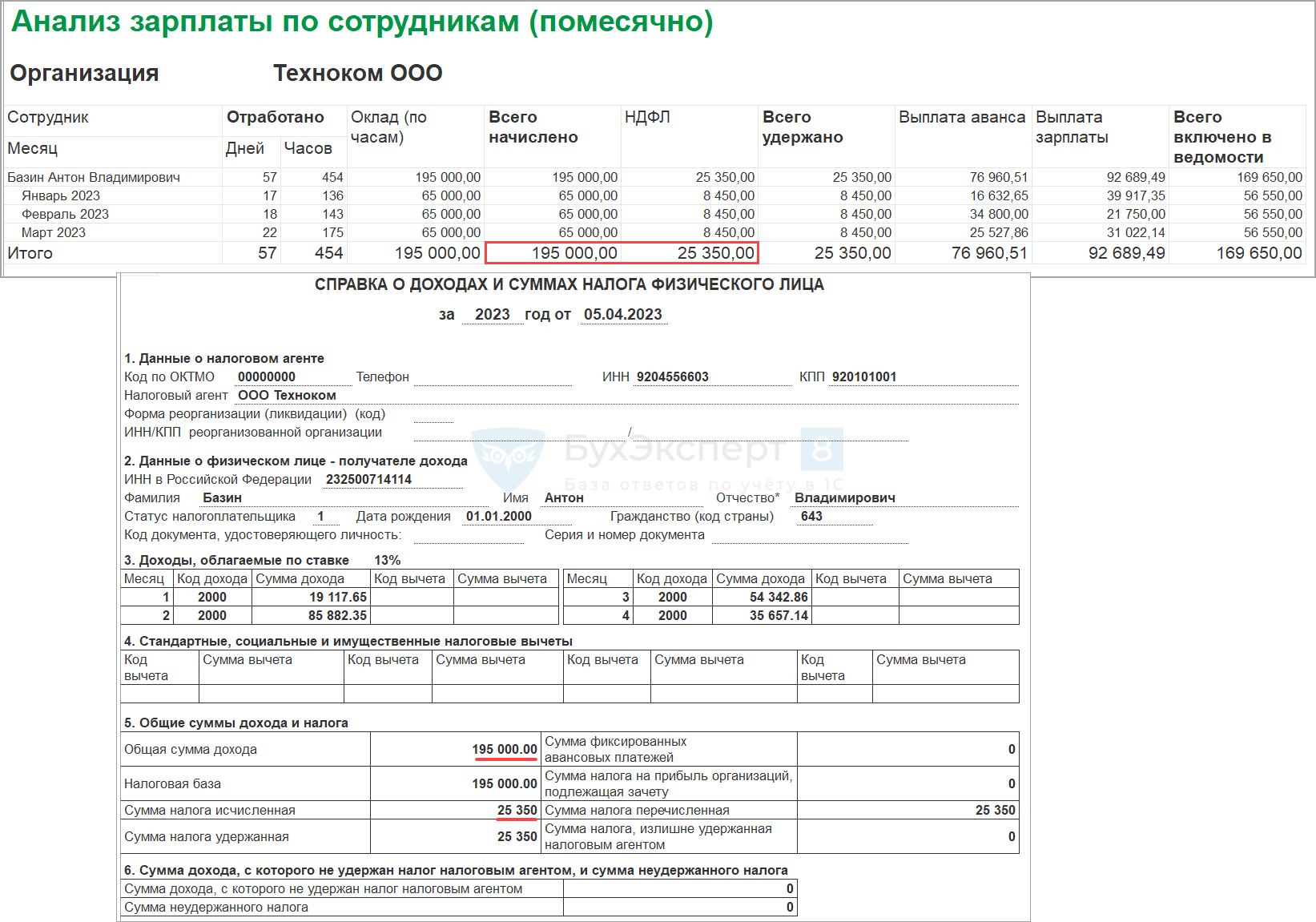 - подробная информация о доходах и вычетах, разделенная помесячно.