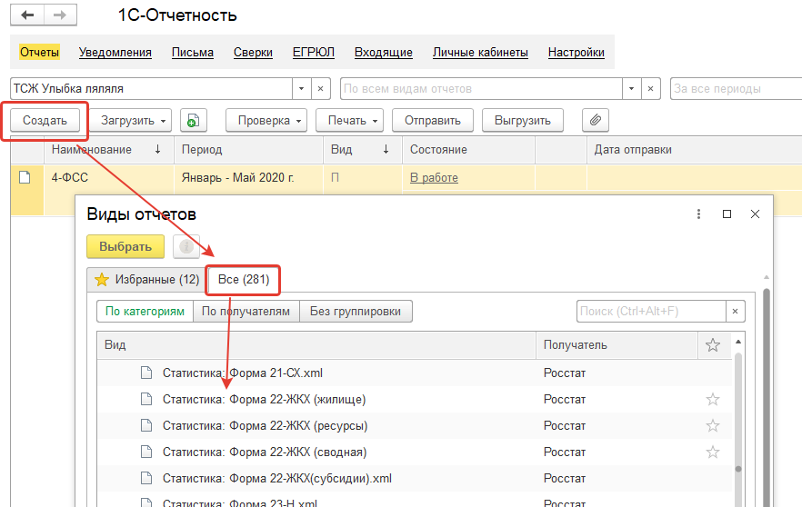 Далее необходимо нажать кнопку «Создать». Отчет находится в папке «Статистика».
