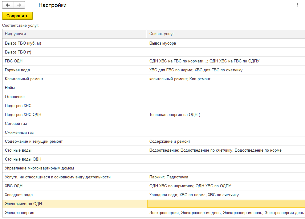 1. Перед заполнением н еобходимо выполнить настройку соответствия услуг: кнопка «Заполнение» — «Настройка».