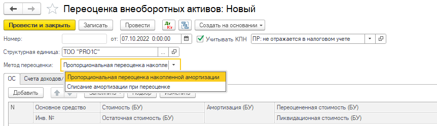 В конфигурации для целей переоценки стоимости ОС предусмотрены