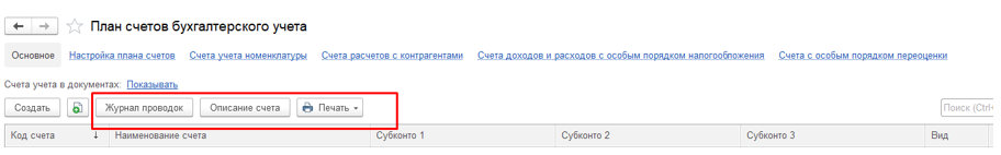 Запрещенные к использованию в проводках счета подсвечены в Плане счетов желтым цветом.