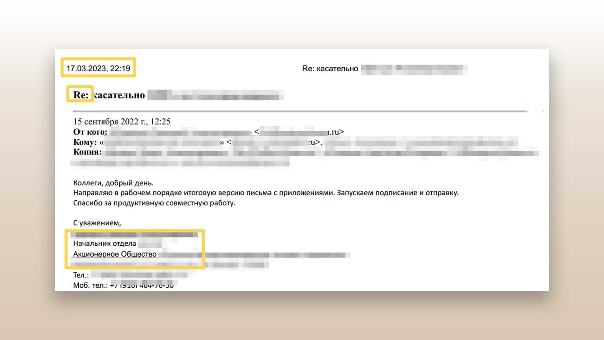 Чтобы доказать принадлежность электронной почты другой стороне договора, предлагается использовать следующие доводы: